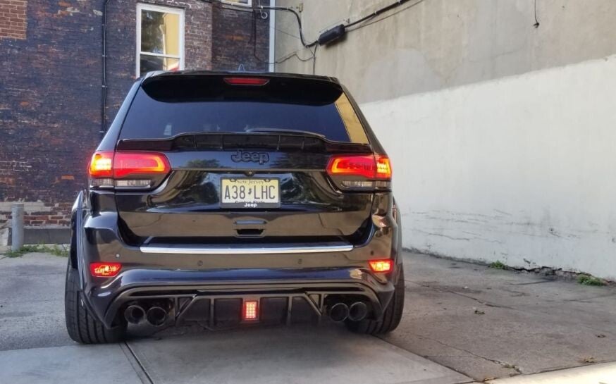 1. Achterbumperdiffuser voor vier uitlaatpijpen met LED – glanzend zwart (JEEP GRAND CHEROKEE SRT 2014–2021)